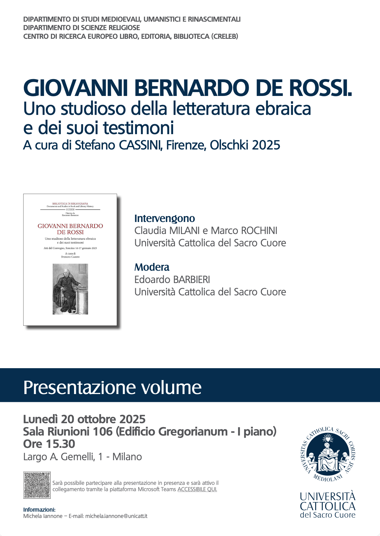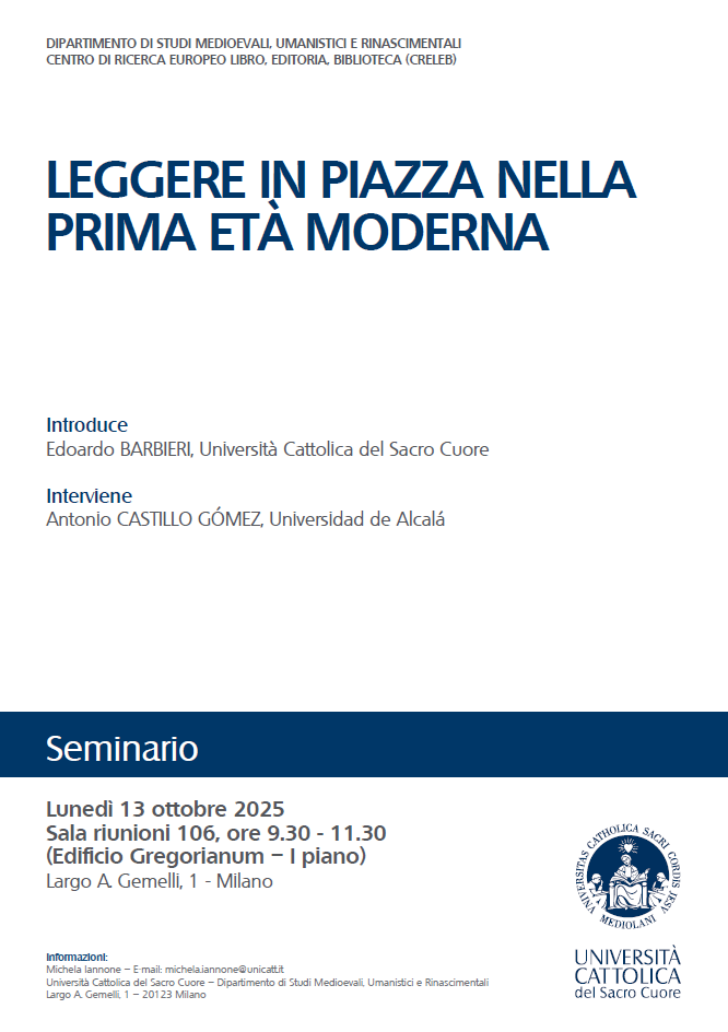 Milano, Università Cattolica, Largo Gemelli 1, Sala Riunioni 106 (Edificio Gregorianum - I piano)