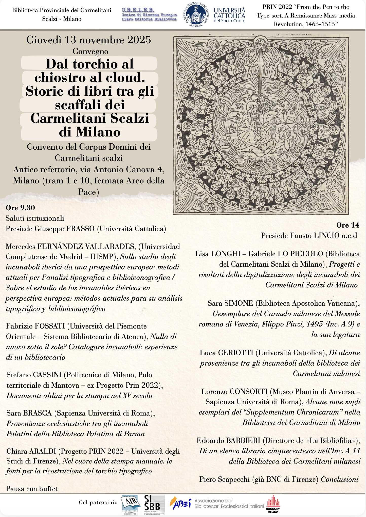 Dal torchio al chiostro al cloud. Storie di libri tra gli scaffali dei Carmelitani Scalzi di Milano