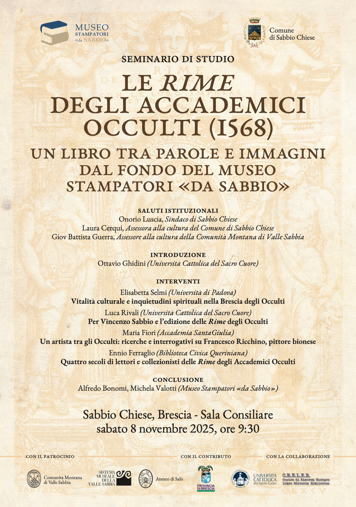 Le Rime degli Accademici Occulti (1568). Un libro tra parole e immagini dal fondo del Museo Stampatori "da Sabbio"
