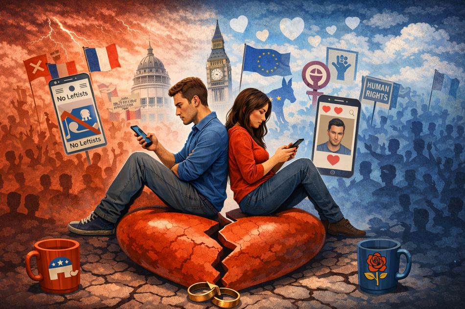 C’è stato un tempo non lontanissimo in cui si diceva che di politica fosse meglio non parlare ai primi appuntamenti. Non perché fosse irrilevante, ma perché poteva rovinare la serata. Oggi il problema sembra essersi rovesciato: la politica arriva prima dell’appuntamento, spesso già nel profilo, come un dettaglio che anticipa tutto il resto, una sorta di pre–selezione silenziosa che decide chi vale la pena incontrare e chi no. Non è un’impressione aneddotica, né una semplice sensazione generazionale. Una serie crescente di studi empirici suggerisce che la polarizzazione politica non si limita più a organizzare le scelte elettorali o le identità pubbliche, ma entra nella sfera più privata e apparentemente più spontanea delle relazioni sentimentali. E lo fa con una discrezione quasi elegante: non attraverso conflitti aperti, ma attraverso piccoli gesti ripetuti milioni di volte, come scorrere un profilo e fermarsi, o passare oltre.