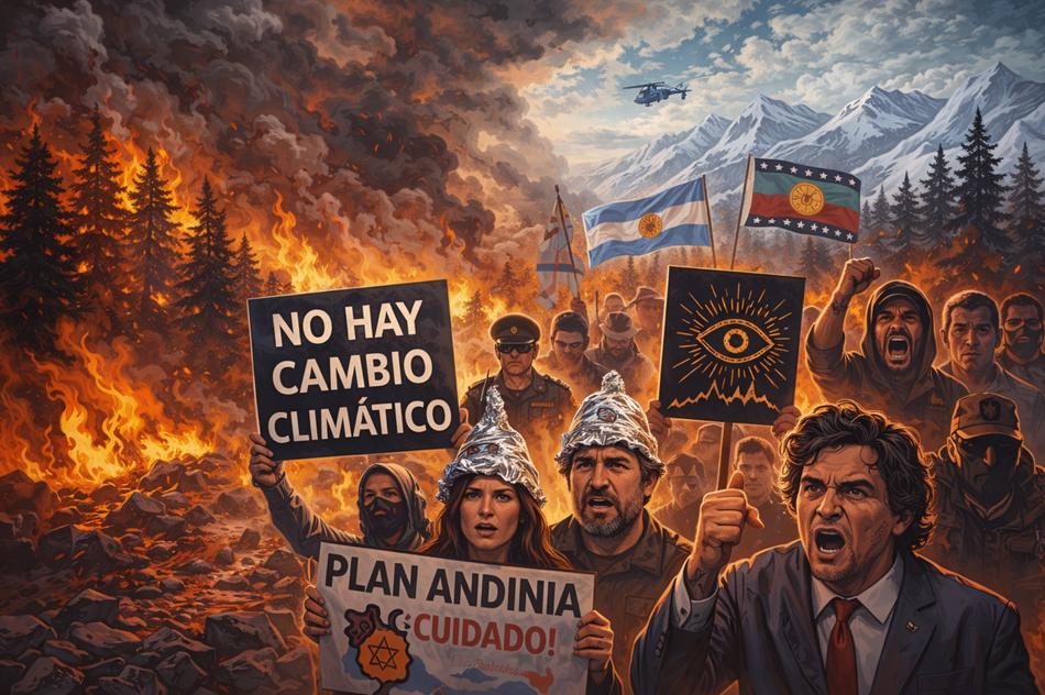 Parallelamente, circolano teorie cospirazioniste come quella del “Piano Andinia”, una vecchia teoria antisemita che dipinge la Patagonia come oggetto di un complotto ebraico per appropriazione territoriale attraverso la “depopolazione” via incendi. Queste narrazioni – basate su voci sulla presenza di soldati israeliani o sulla vendita di terreni a colonizzatori israeliani – non solo sono irresponsabili, ma alimentano il fuoco dell’antisemitismo e distolgono l’attenzione da ciò che accade realmente: speculazione immobiliare, cambi d’uso del suolo, e tentativi di deregolamentazione.